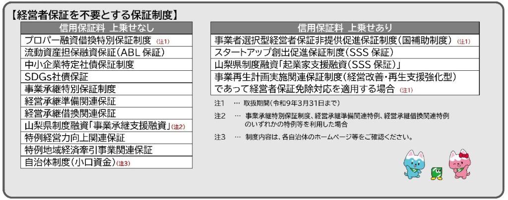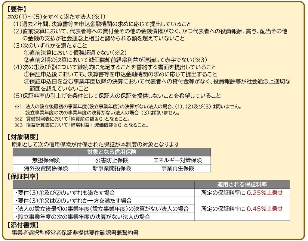 ※経営者保証を不要とする制度等で専用ページがないものについては、当協会にお問い合わせください。